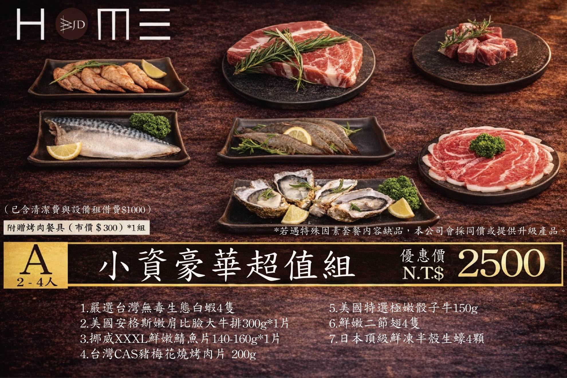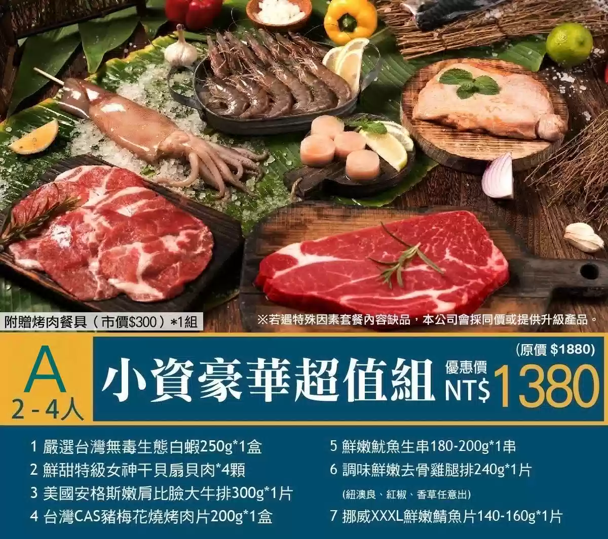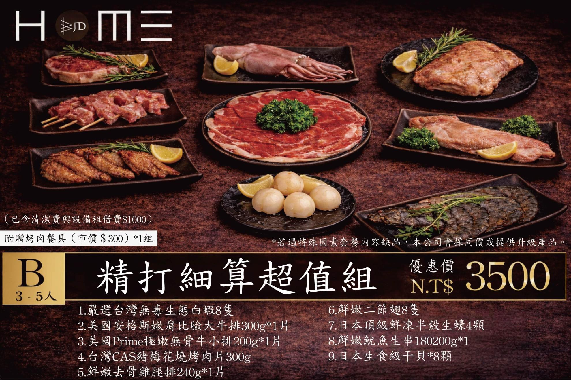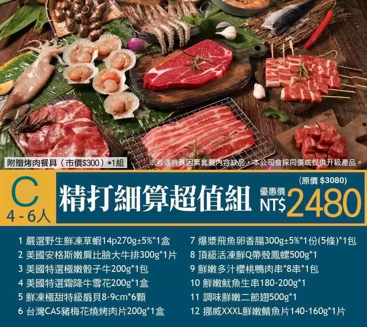 一、請民宿代購烤肉套餐,有A B C 套餐可選購(需提早一週預訂)