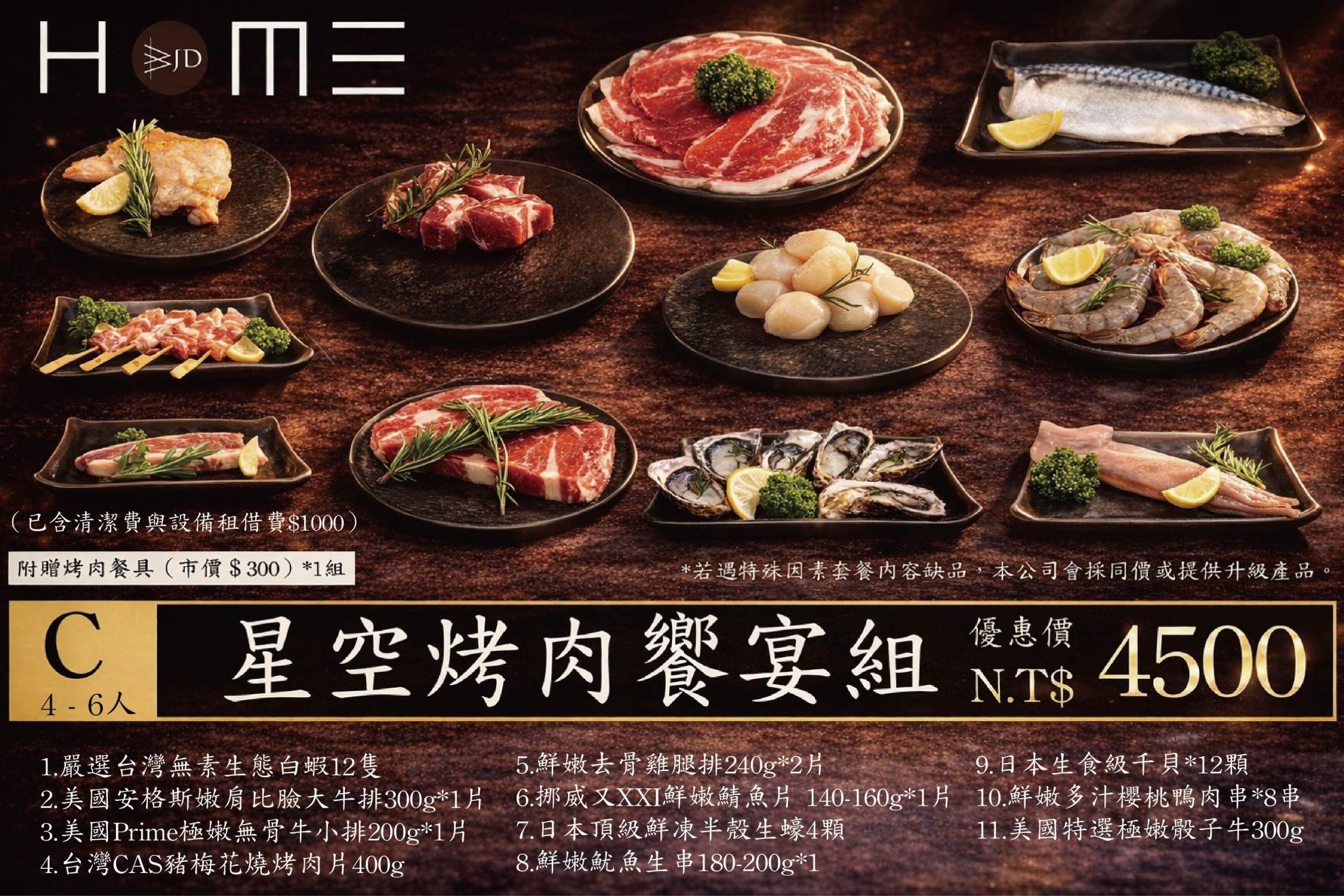 - 需自行準備所有烤肉會使用到的烤肉工具用品及消耗品,一次性用品請自備)(不包含所有消耗用品)。